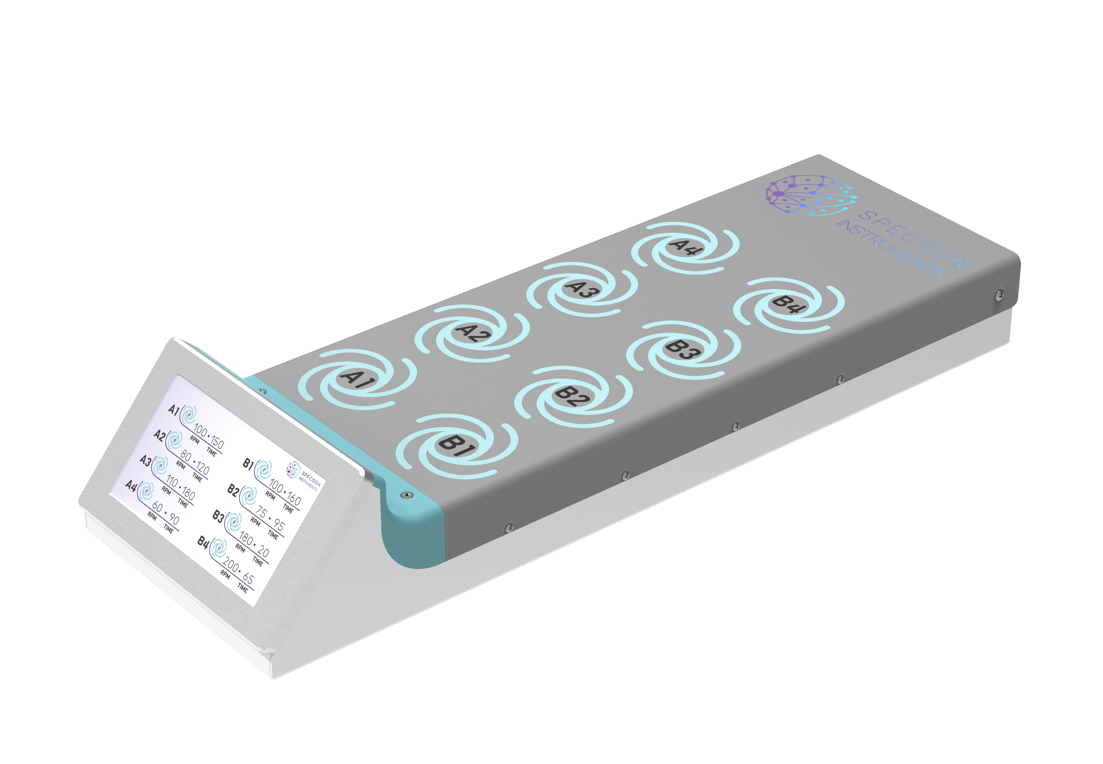 Specson Instruments provides highly sensitive and accurate magnetic stirrer with 8-channel independent control capability. It comes with 7'' capacitive touchschreen and aluminum case. User can easily set RPM and timer for each channel for their synthesis protocol. You can also contact our team for the customized solutions