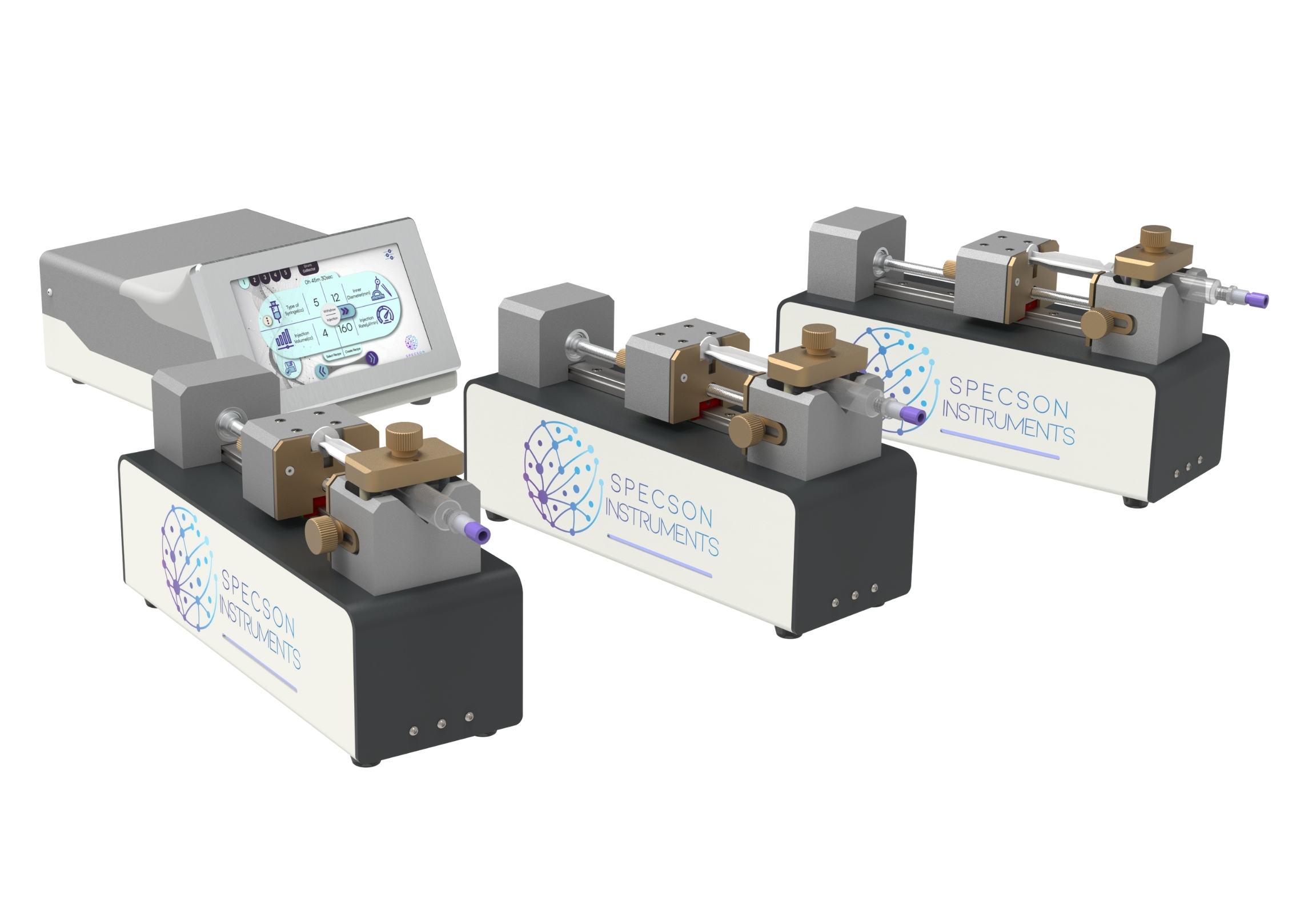 Syringe Pump Specson 100-MC is a modular injection pump with an external control unit. Users can add up to 7 independent channels with individual control. Control unit comes with 7’’ capacitive touch screen and user friendly interface. Users can easily set infinite number of injection/withdraw steps by using advanced recipe management system. All parts are made out of CNC machined 6061 aluminum.