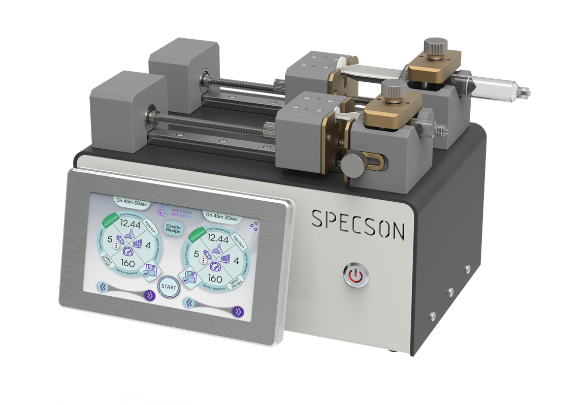 The Specson 400-X dual independent channel infusion and withdraw syringe pump. This producs is built with 2 separate pump drivers which are capable of independent pulseless and reproducible injection/withdraw