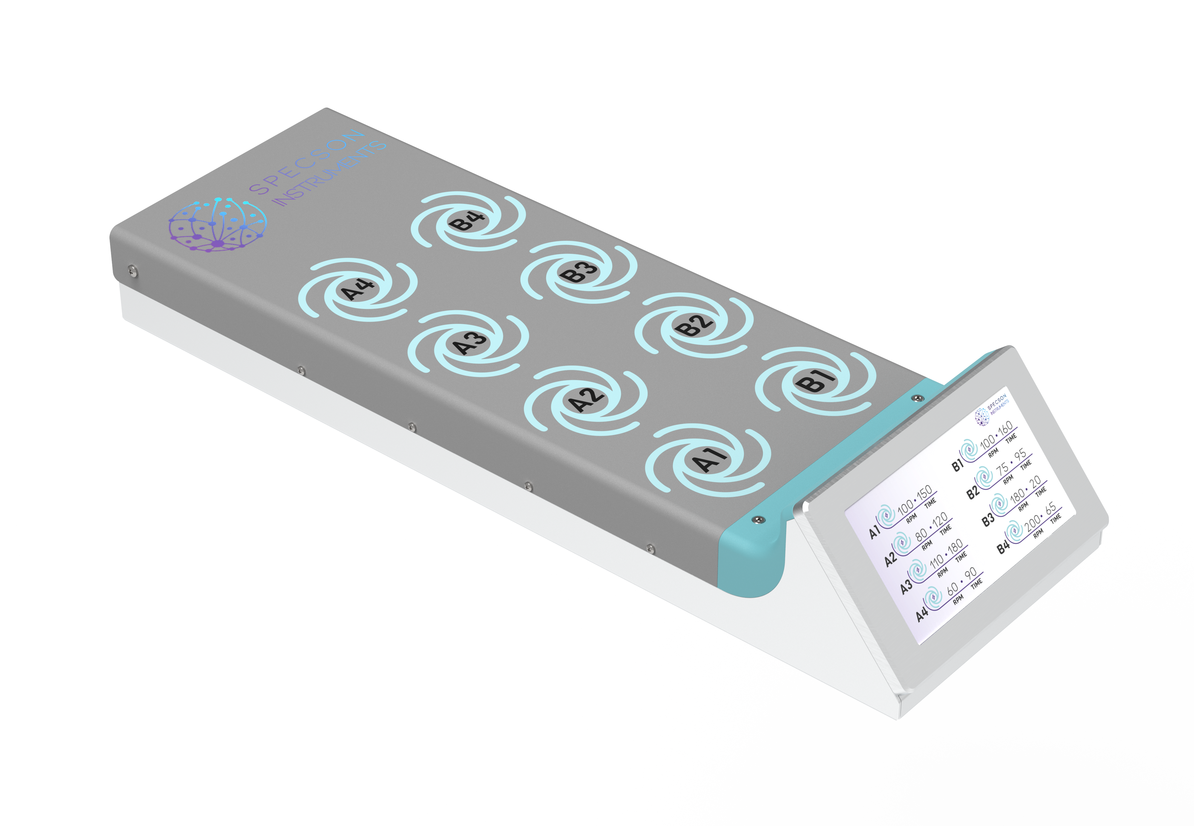 Specson Instruments provides highly sensitive and accurate magnetic stirrer with 8-channel independent control capability. It comes with 7'' capacitive touchschreen and aluminum case. User can easily set RPM and timer for each channel for their synthesis protocol. You can also contact our team for the customized solutions
